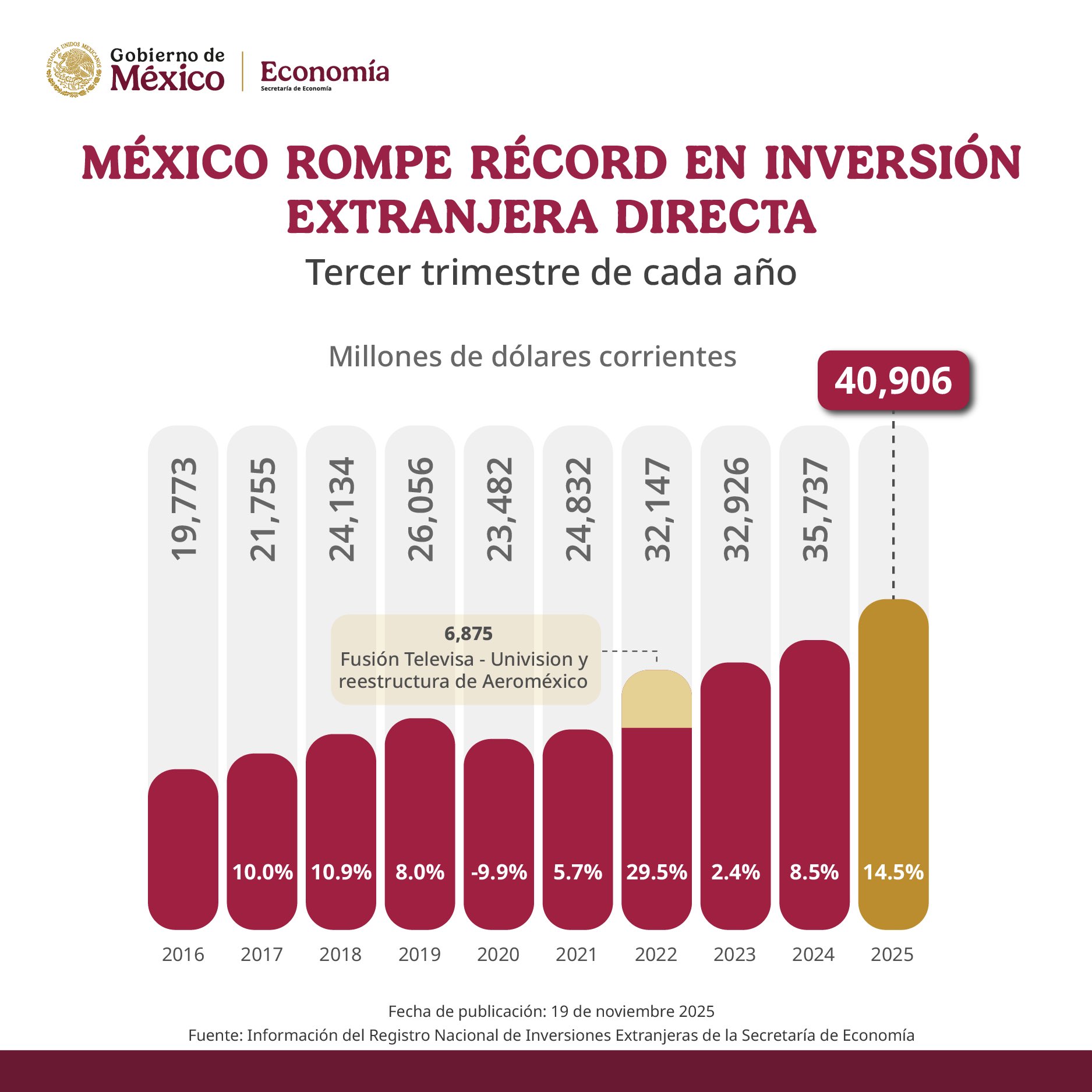 Con este anuncio, el Gobierno federal anticipa que México consolidará uno de sus mejores registros de inversión extranjera en más de una década, en un entorno en el que la administración ha buscado atraer capitales mediante estabilidad macroeconómica, promoción internacional y nuevos acuerdos de integración productiva.